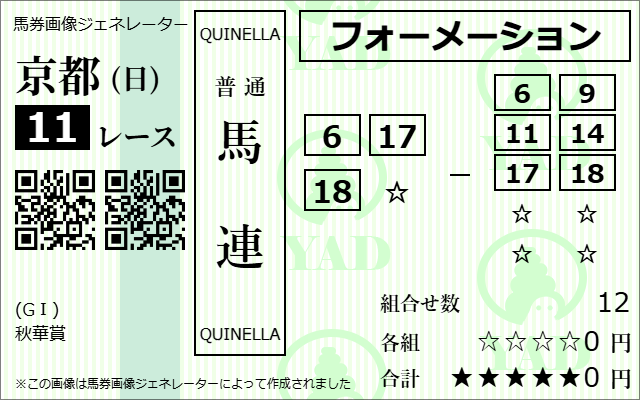 | 馬番 | 18 | 17 | 9 | 14 | 11 | 6 | 4 |